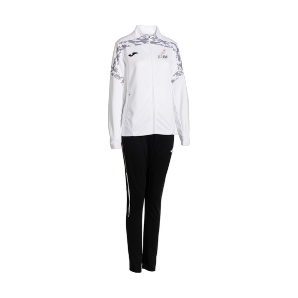 Ensemble de survêtement pour femme, composé d'un sweat à capuche zippé et d'un pantalon long, conçu pour offrir une combinaison parfaite de confort, de style et de fonctionnalité dans toute activité sportive. Le sweat présente des bords côtelés aux poignets et à la taille, garantissant un ajustement ferme et confortable, ainsi que des poches zippées pour ranger vos effets personnels en toute sécurité pendant vos entraînements. Sa fermeture éclair complète avec protège-menton offre un confort accru, évitant les frottements éventuels lors de l'utilisation, et le design sublimé sur les manches ajoute une touche moderne et distinctive. D'autre part, le pantalon long comprend un système de double ajustement avec une taille élastique et des cordons, permettant un ajustement personnalisé et sécurisé. De plus, les poches zippées sur le pantalon garantissent que vous puissiez ranger vos objets personnels facilement et en toute sécurité.